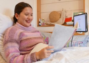 Aktuell erprobt die FES Lahr einen Avatar als Leihgerät in der G11 – mit sehr positiven Erfahrungen. Er wird derzeit von Charlotte genutzt. Charlotte erkrankte mit 16 Jahren am postviralen Fatigue-Syndrom (ME/CFS) und konnte lange keinen einzigen Schultag besuchen. Dank des Avatars kann sie nun stundenweise von zu Hause am Unterricht teilnehmen. So hat sie trotz schwerer Erkrankung die realistische Chance, ihr Abitur zu erreichen.